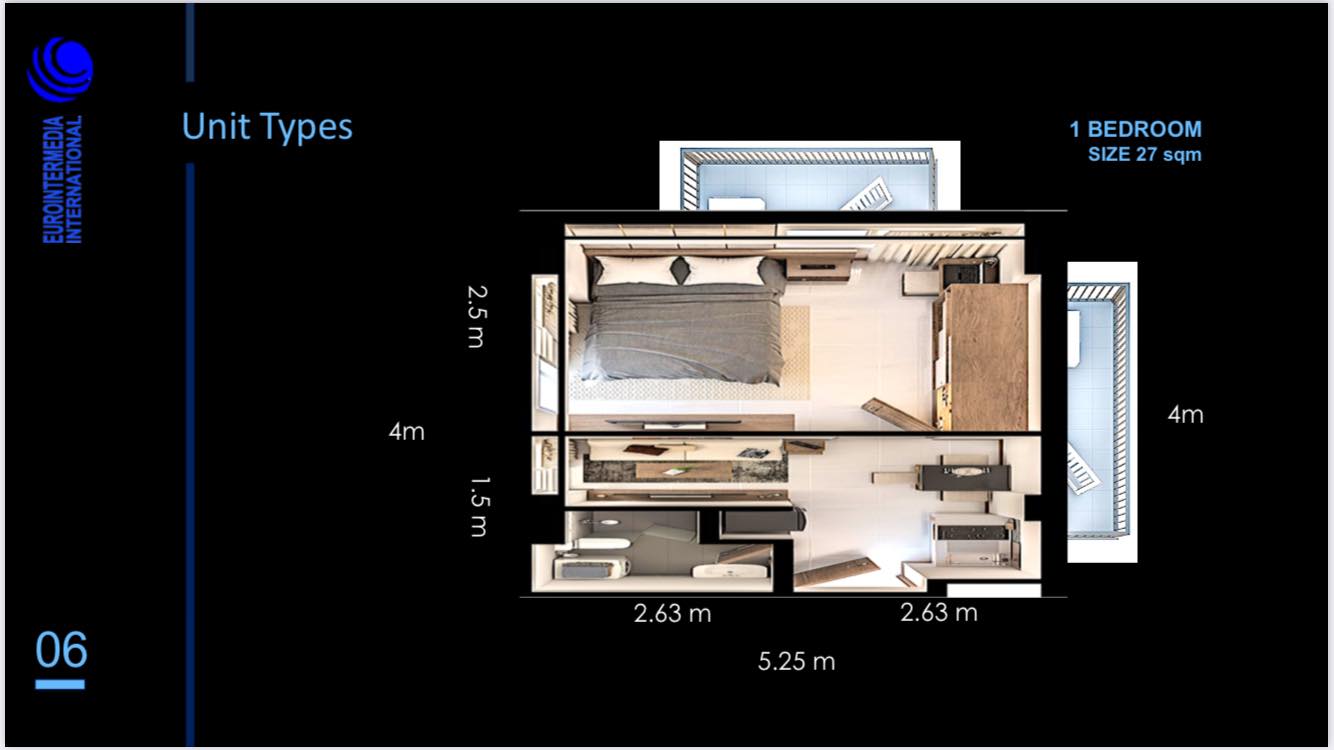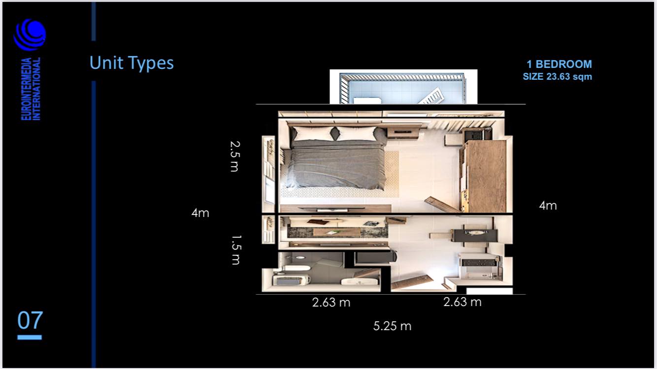 23.63 sqm 1BR : 40 units; 27 sqm Exec 1BR : 10 units; 31.5 sqm