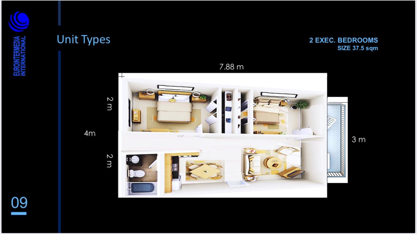 Exec. 2BR : 30 unit; 37.5 sqm Exec. 2BR : 10 units